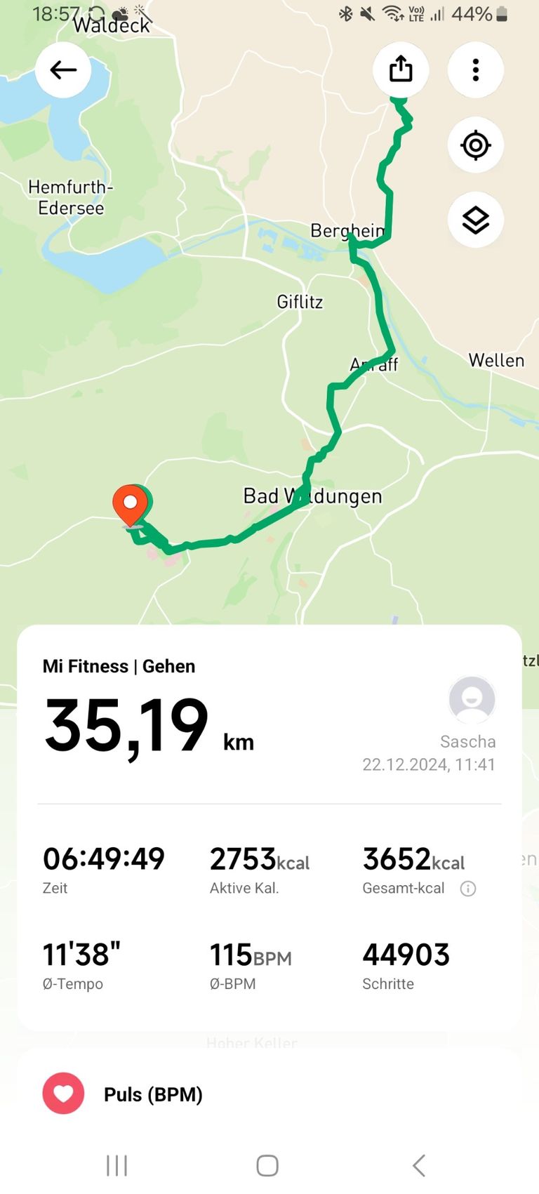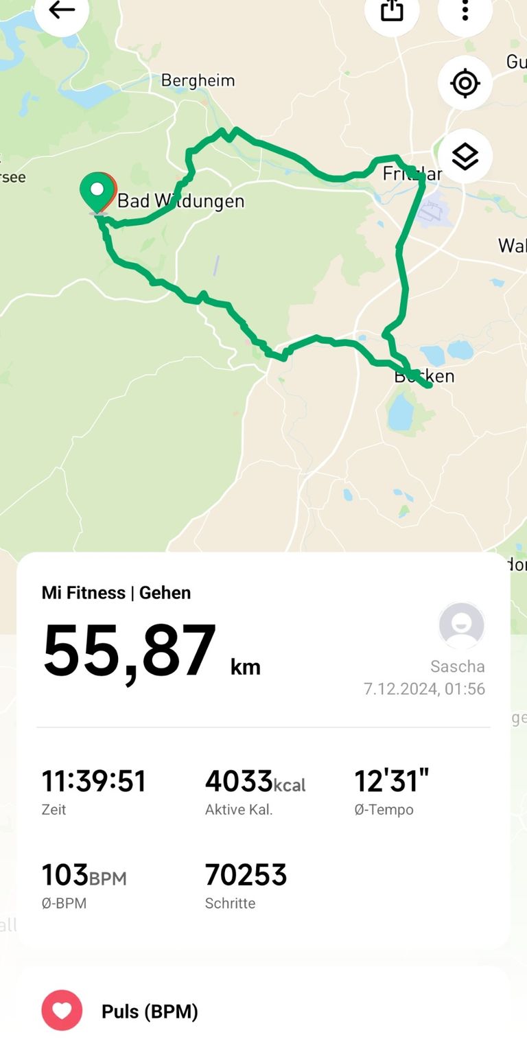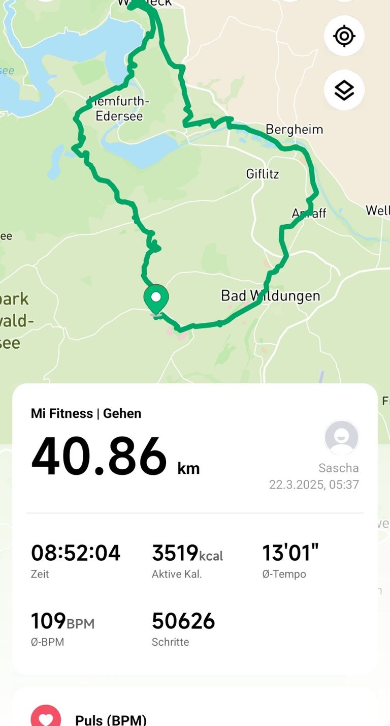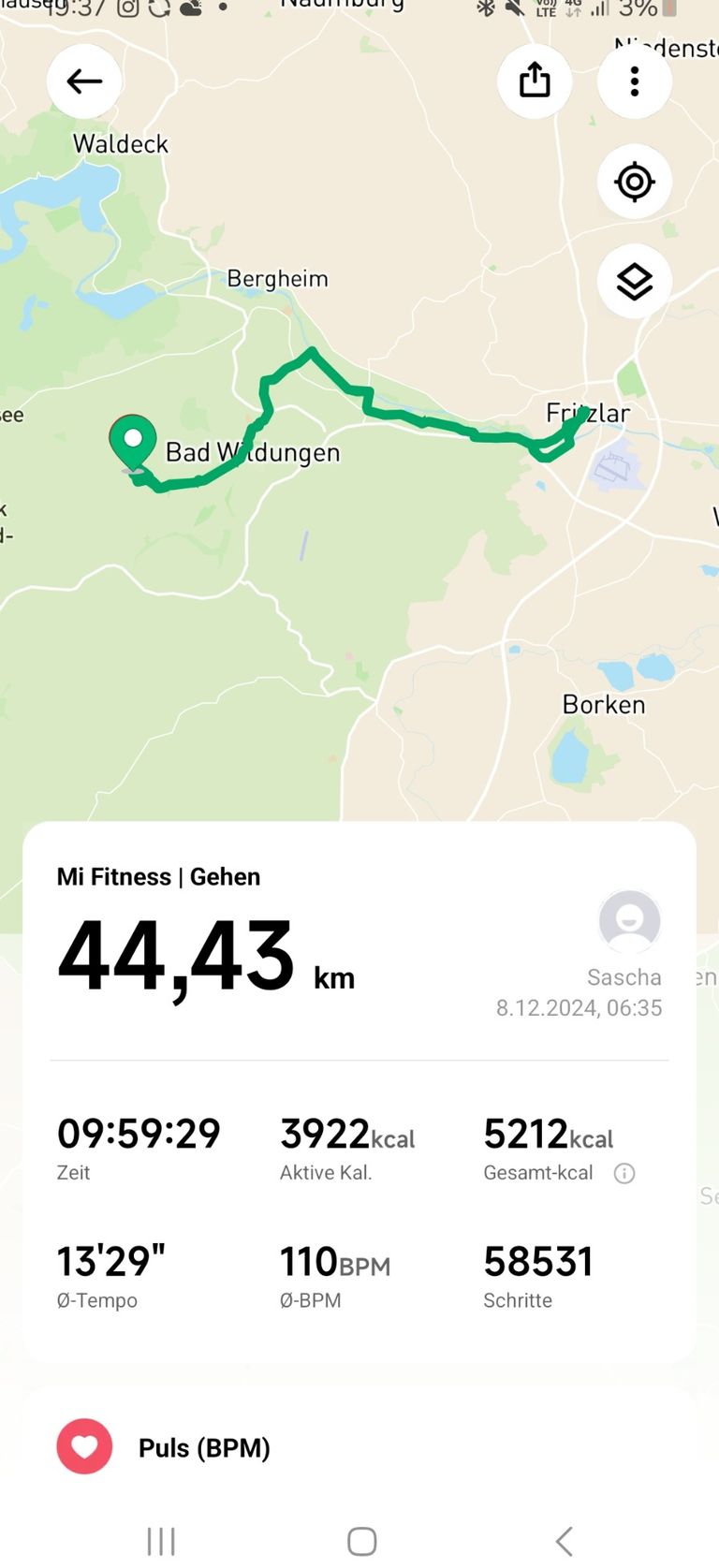 It´s 01:40 in the afternoon and I´ve made 27655 steps for 27.47K and burned 3198 active kcal in 315 minutes. And the explenation for that is, that I had a flat tire in Burscheid, had to walk back and then I had to walk to a store where I could by some tires for my bike. So I had to walk more could bike less than planned today.