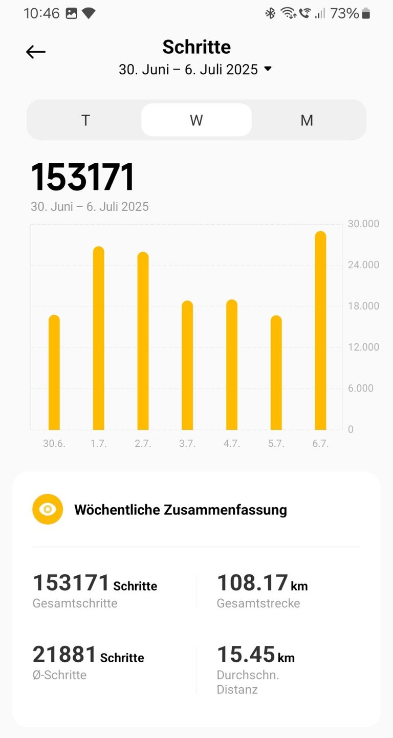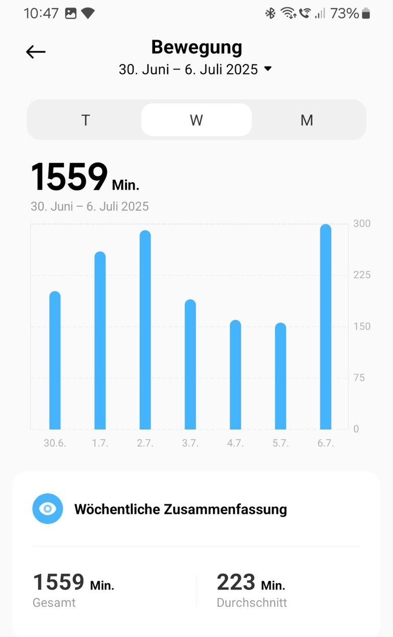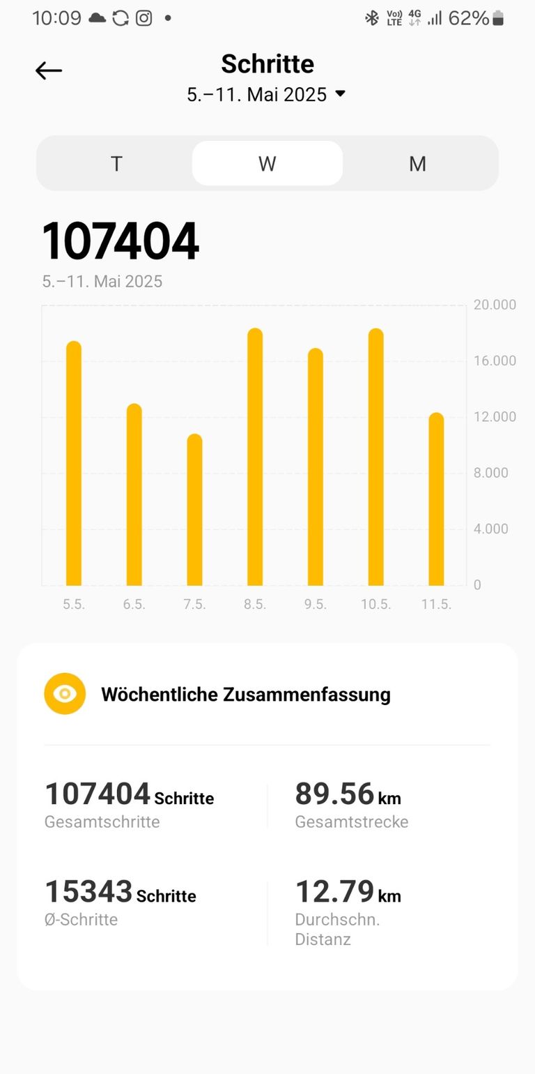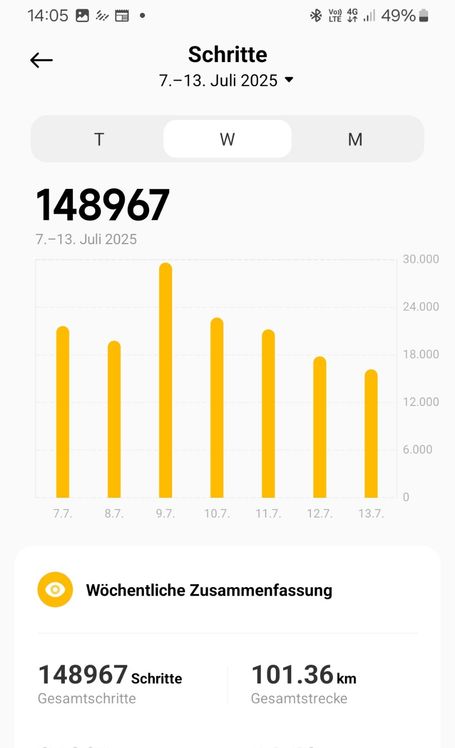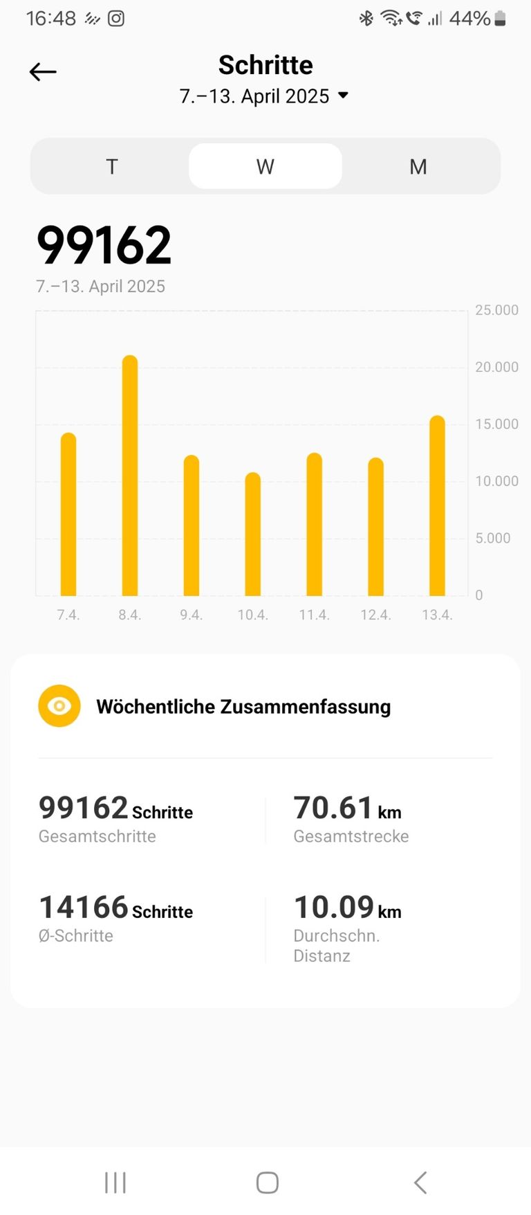 The weekly summery shows that I roughly walked 10 kilometers every day in the last week and already today.