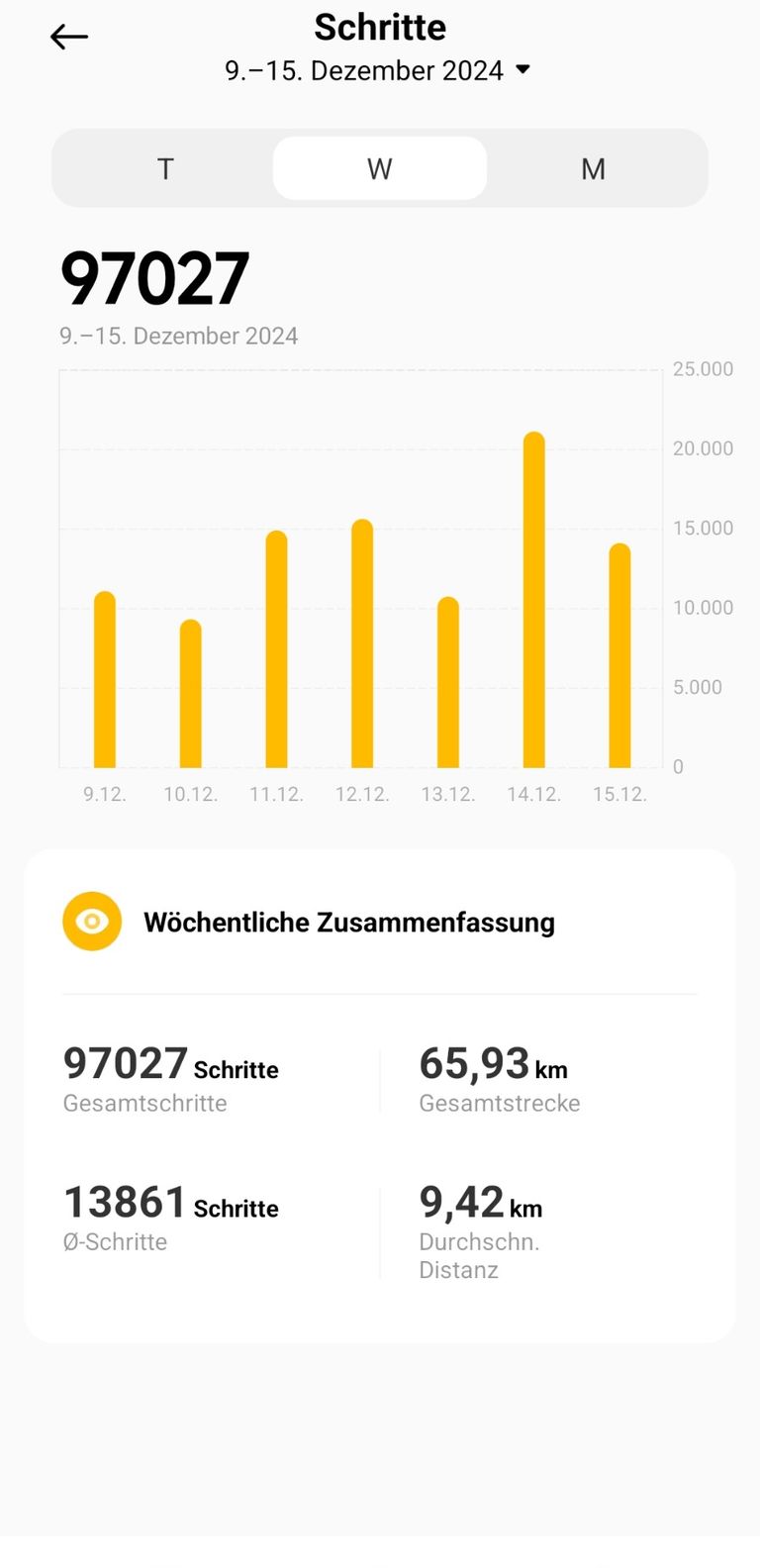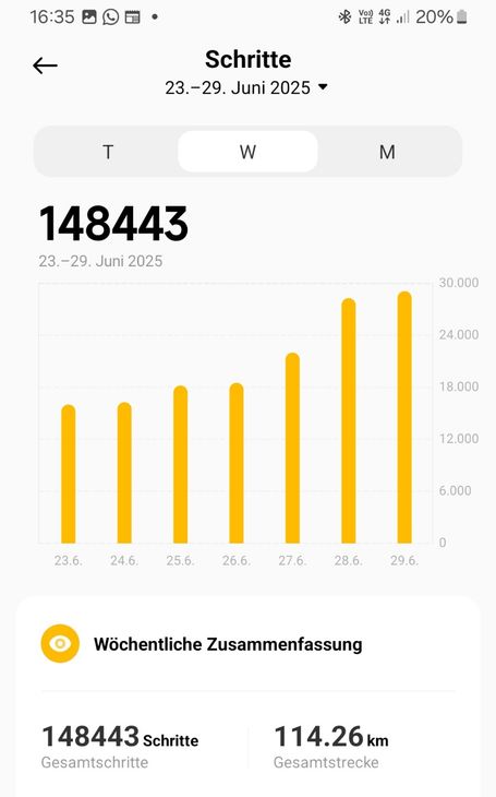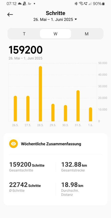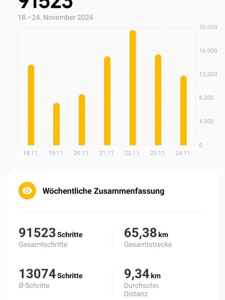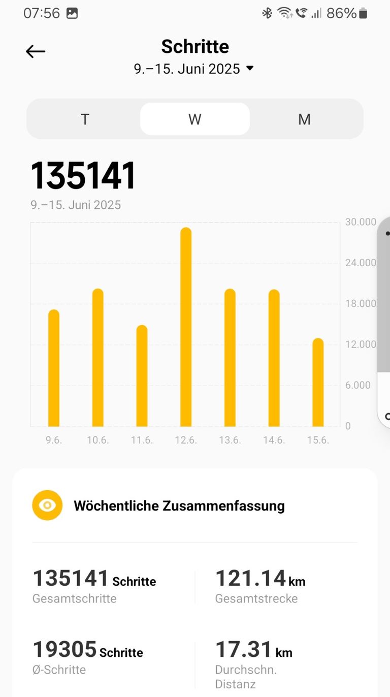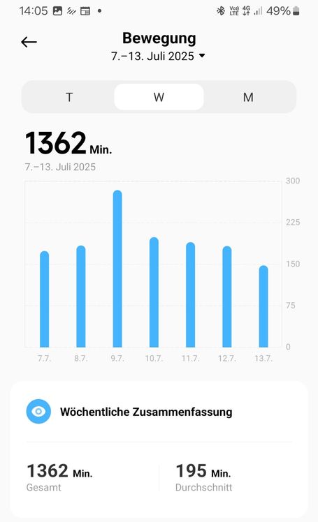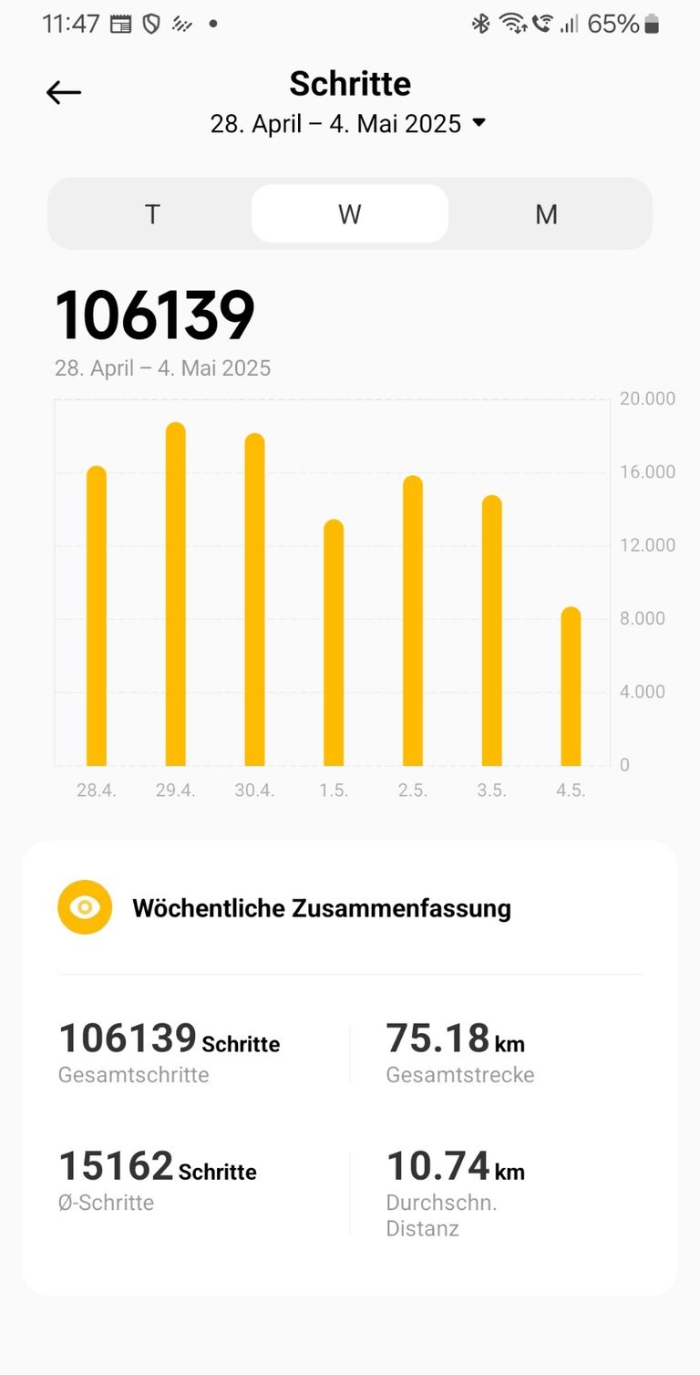 The weekly summery shows that I roughly walked 10 kilometers every day in the last week and already today.