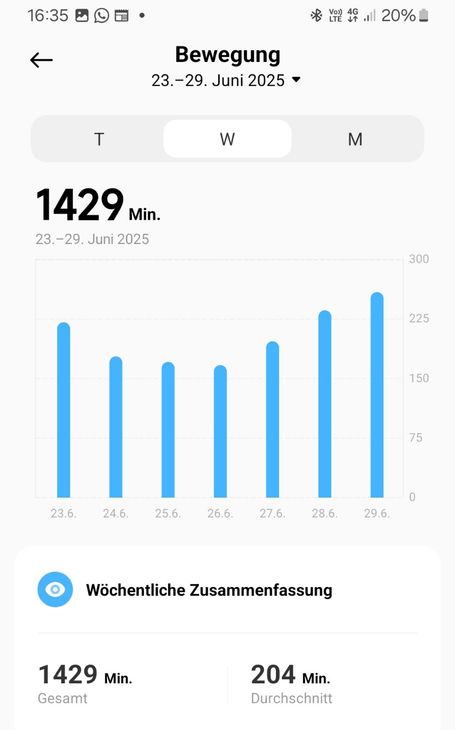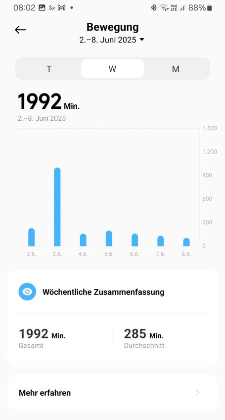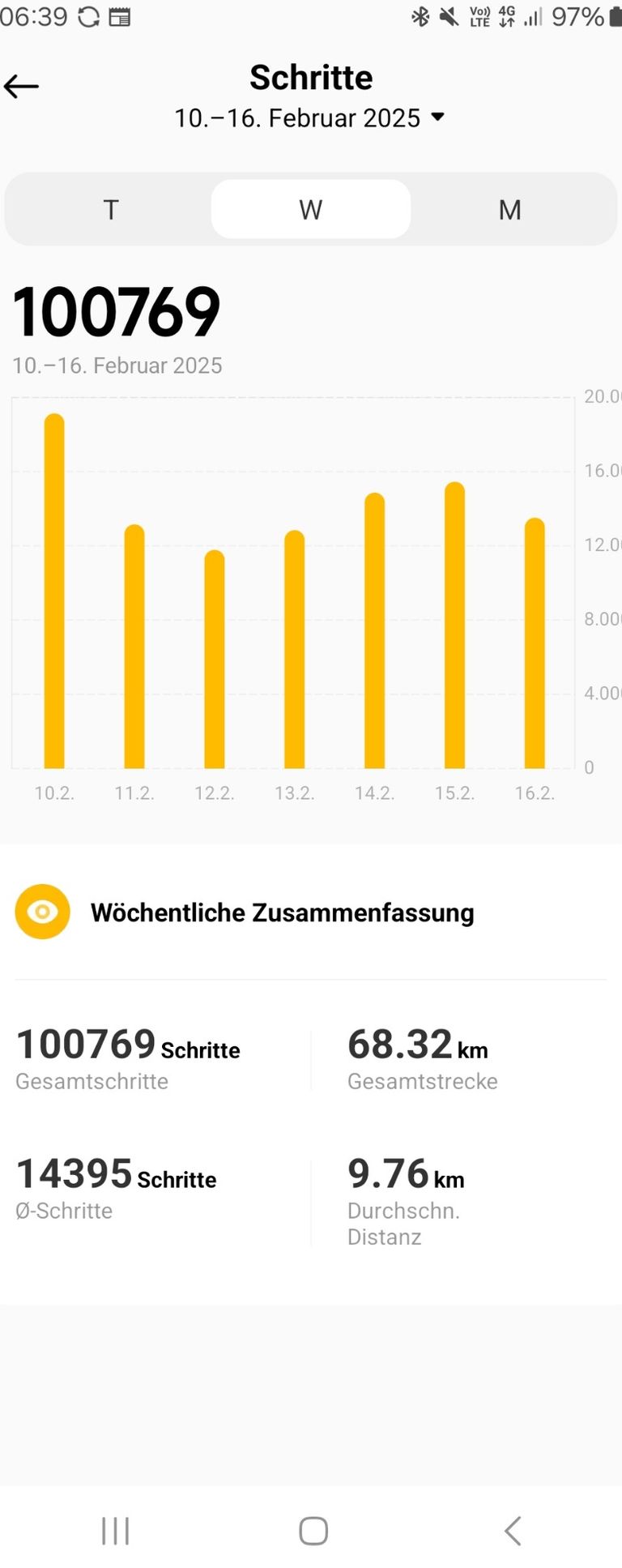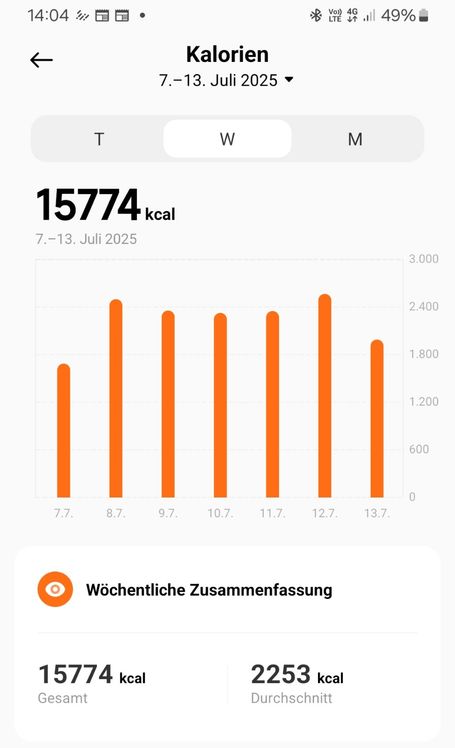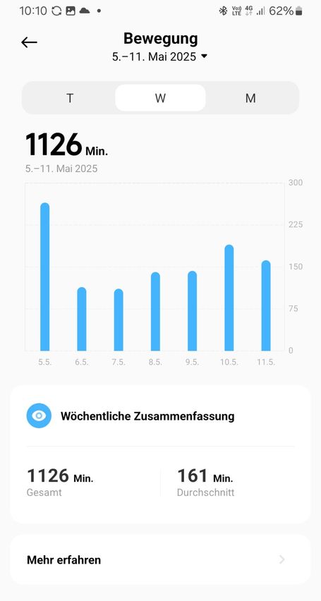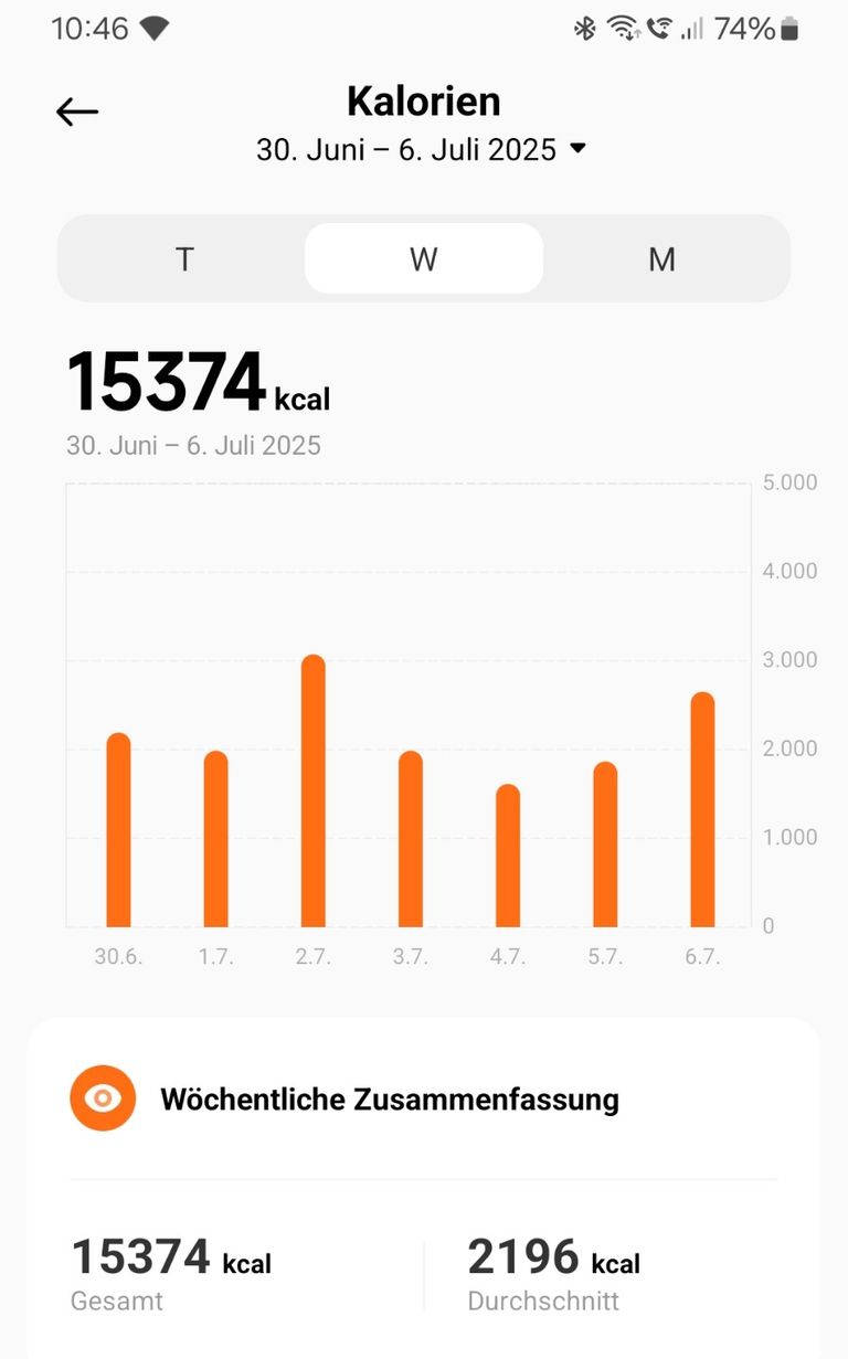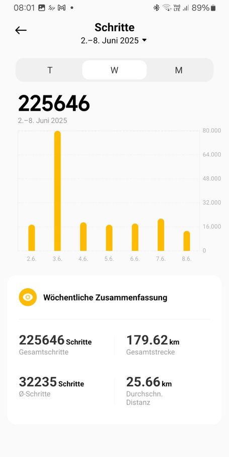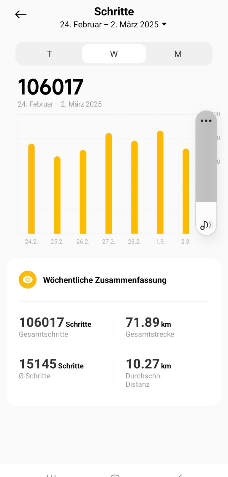 The weekly summery shows that I roughly walked 10 kilometers every day in the last week and already today.