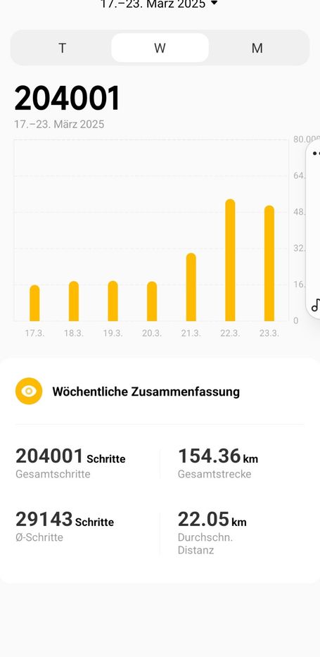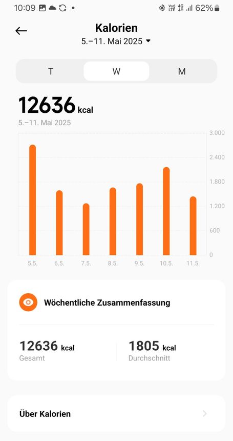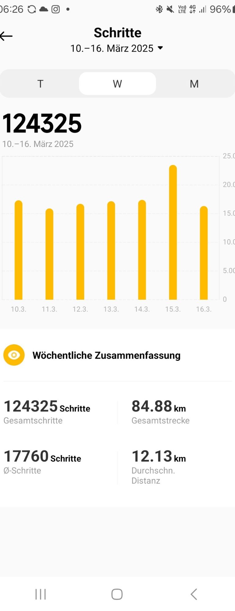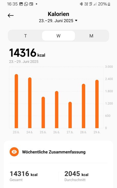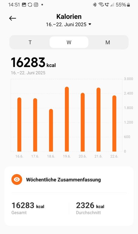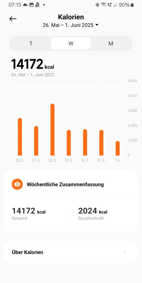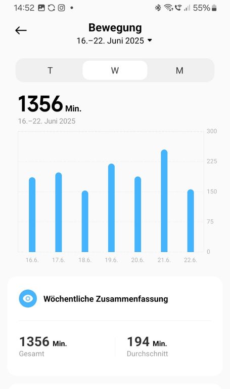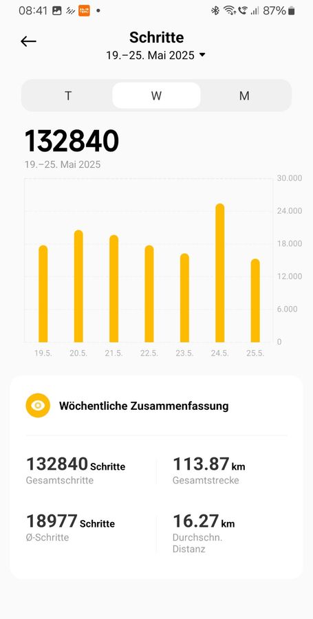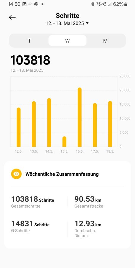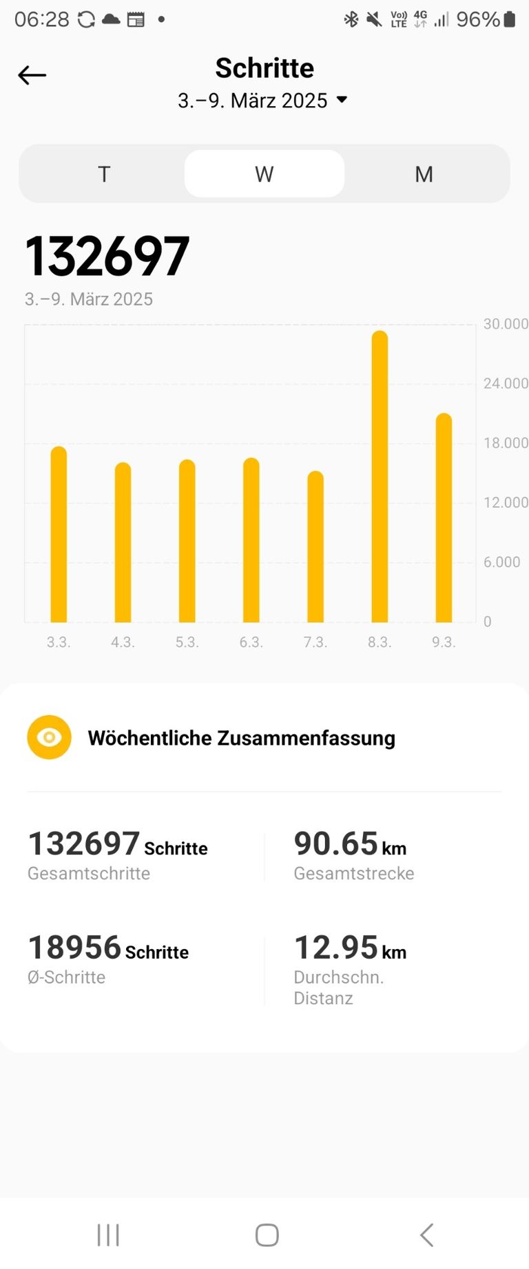The weekly summery shows that I roughly walked 10 kilometers every day in the last week and already today.