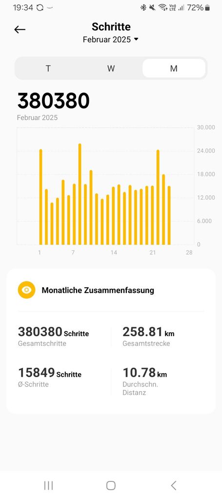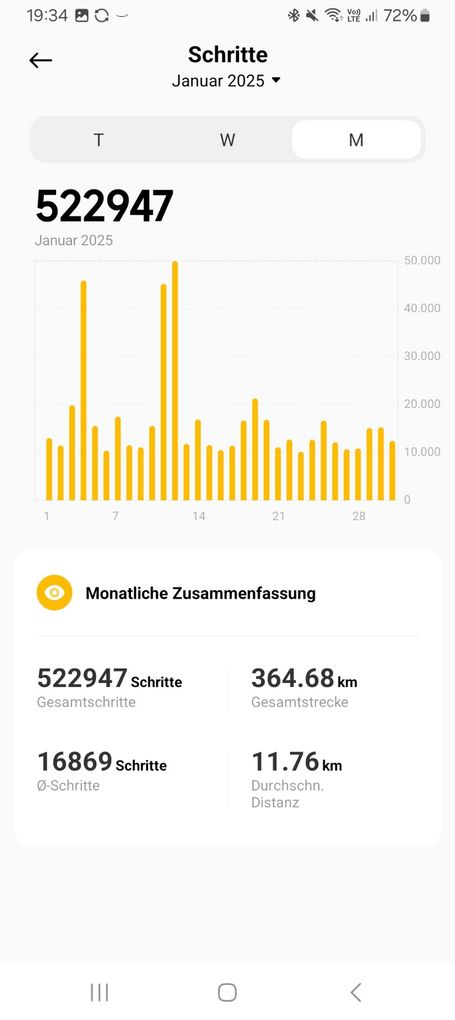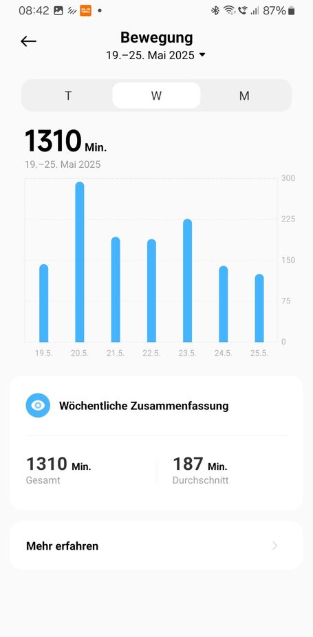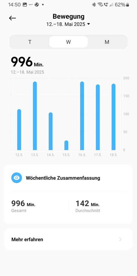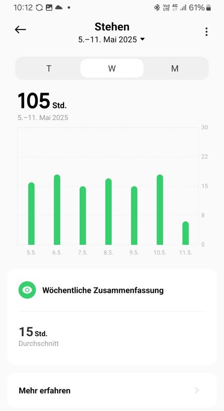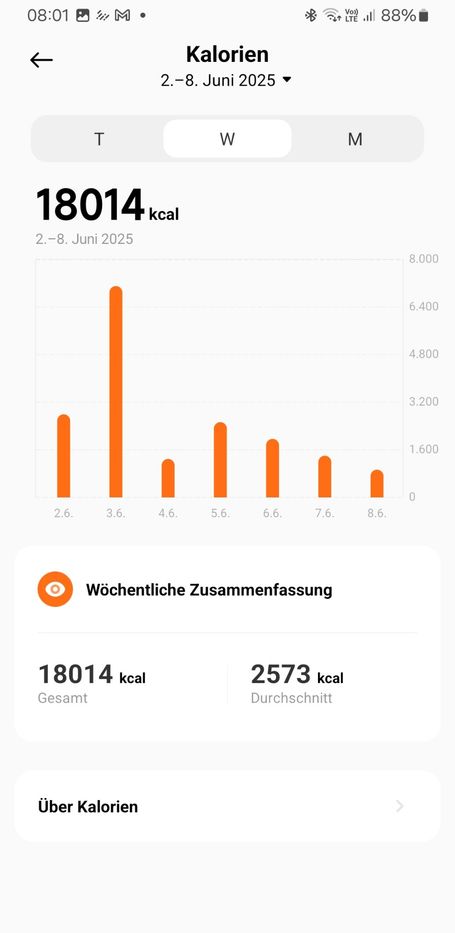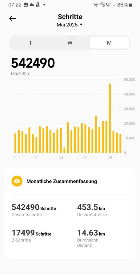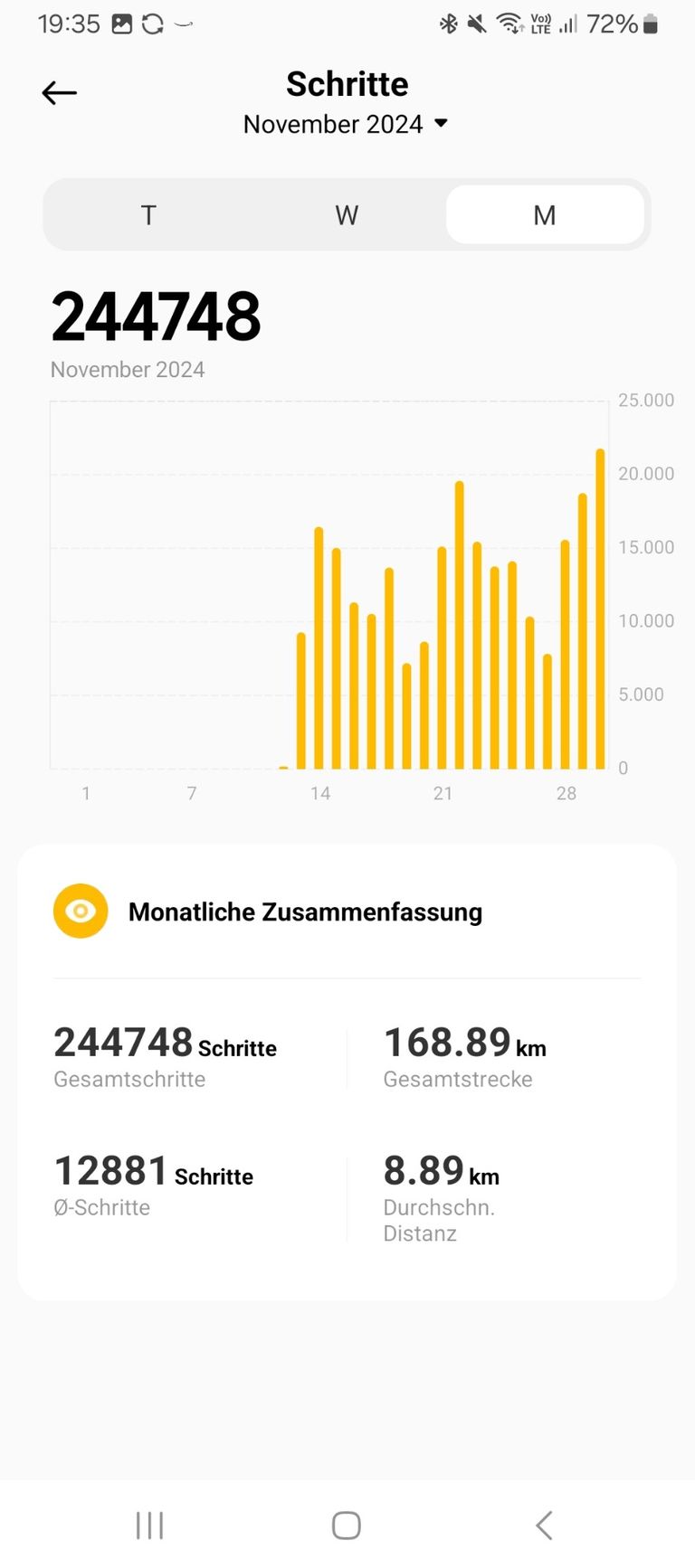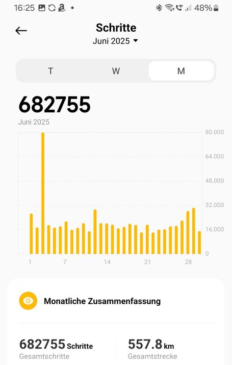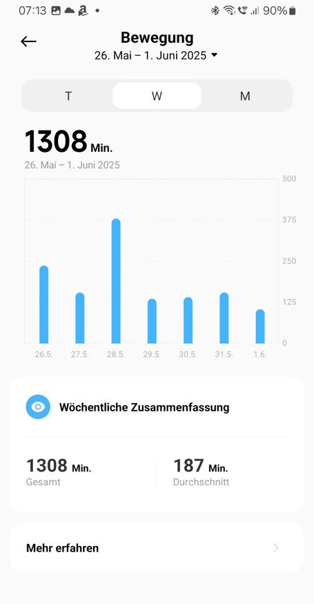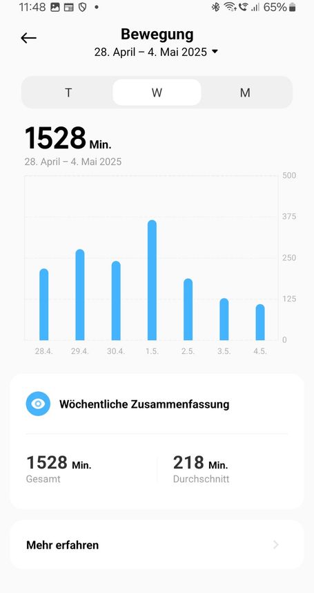The weekly summery shows that I roughly walked 10 kilometers every day in the last week and already today.