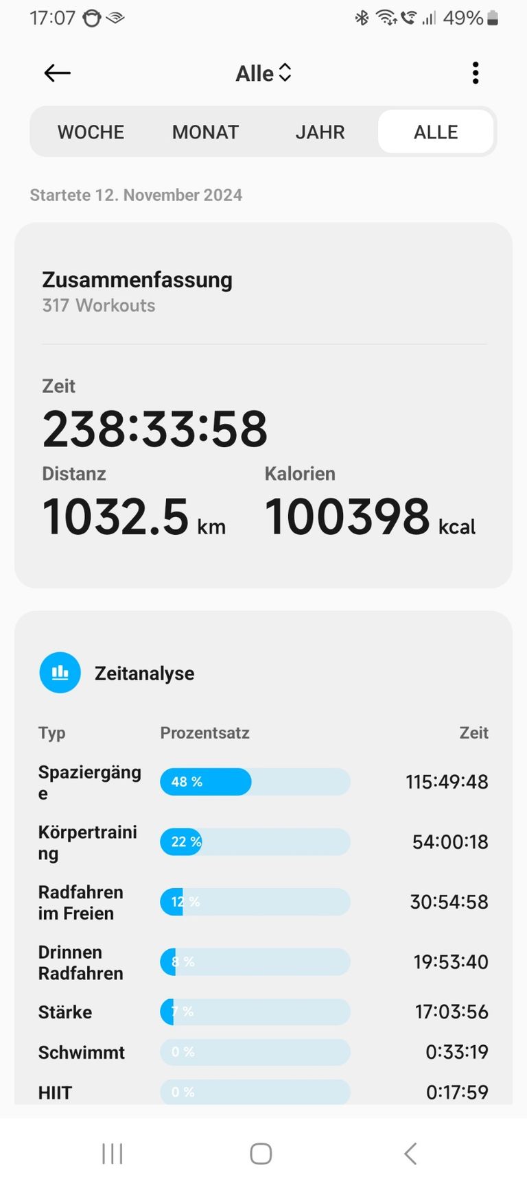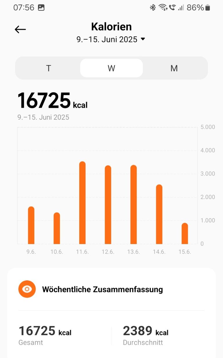 The weekly stats are great, more than 100.000 steps, more than 100 K, more than 2000 kcal burned each day. Nearly 200 active minutes per day, but I have trouble loading up the pictures, hope I can post them tomorrow.