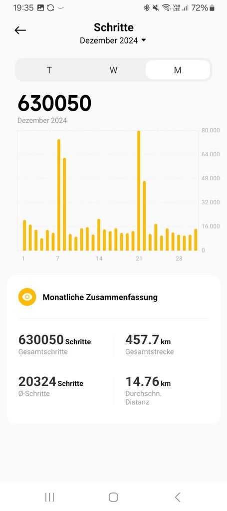 In the last week of the project, I could reach the goal of more than 10.000 steps each day and even more than 10 K.