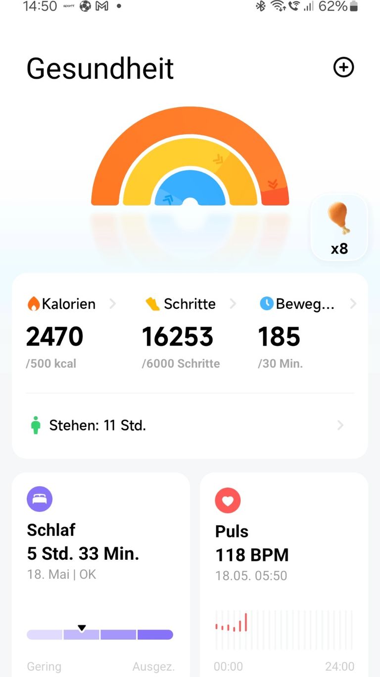Again I had all of my physical activities reached before work. I added 30 Minutes of a different workout (no, I´m not going to film it again) with weights.