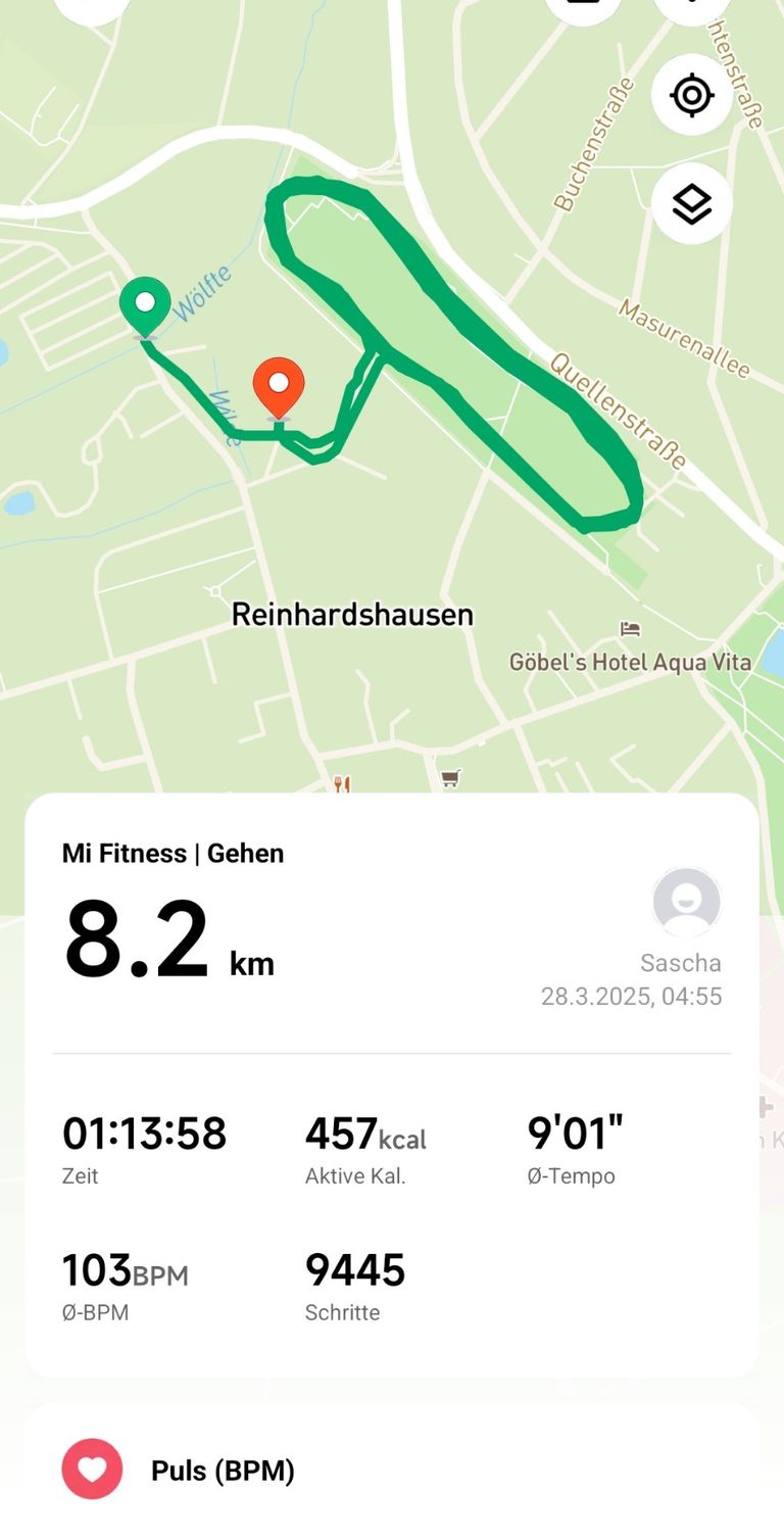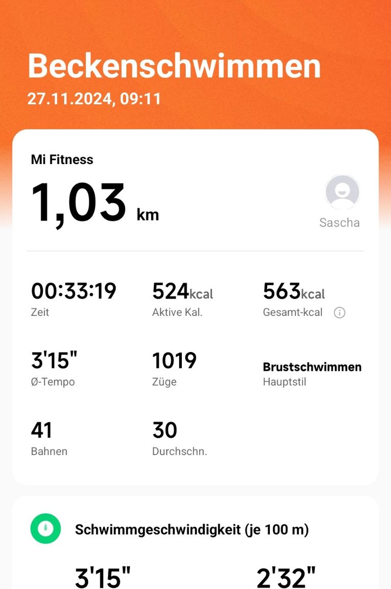 Today my new Xiaomi Band 9c had a breakdown. Additionally to my 10.000 steps I went to the saunarium and swimming. And I swam 100 laps à 25 Meters. But I can only show you the result of the first 40 laps and not the other two rounds of 30 laps, because my wristband shutted down. I was the owner of the Xiaomi band 4, which never did that. It could be that it was also stressed by the heat in the saunarium or the water making it hard to use the touchscreen, but again, the Band 4 didn´t have that problem.