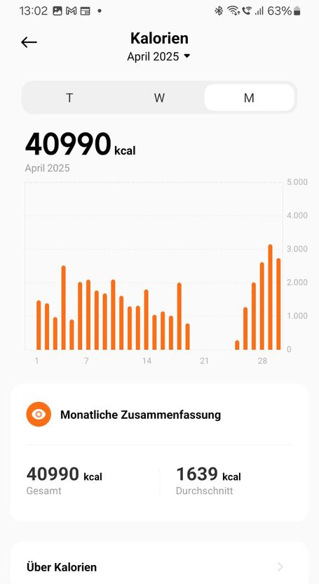 This statistic shows, that I burned over 1.400 active kcal per day in around 155 minutes. And it shows, what this whole project has got to do with addiction, because over the project the time spent actively working out and burning active kcal mounted slowly.